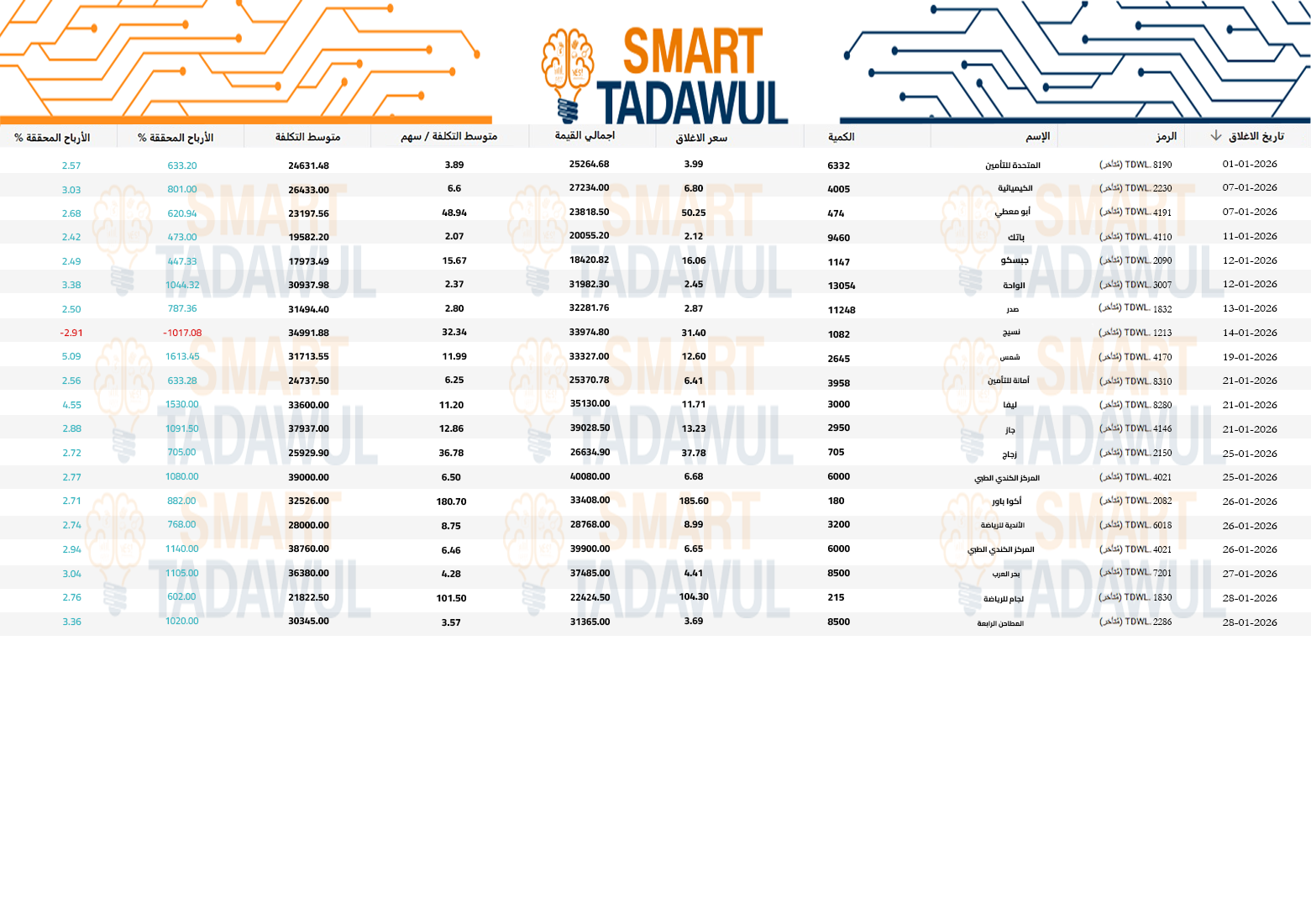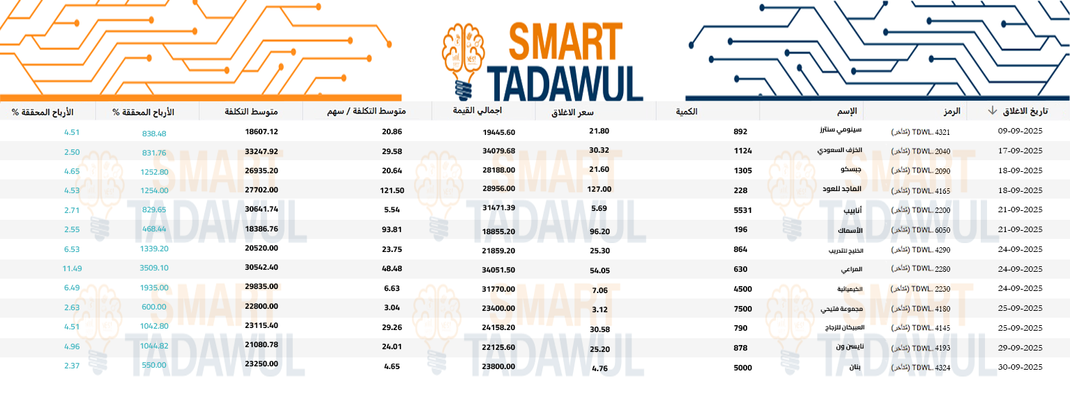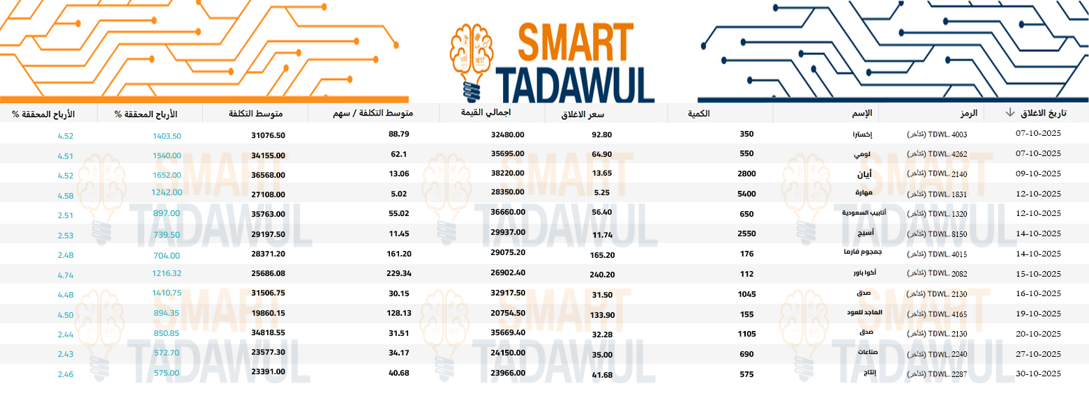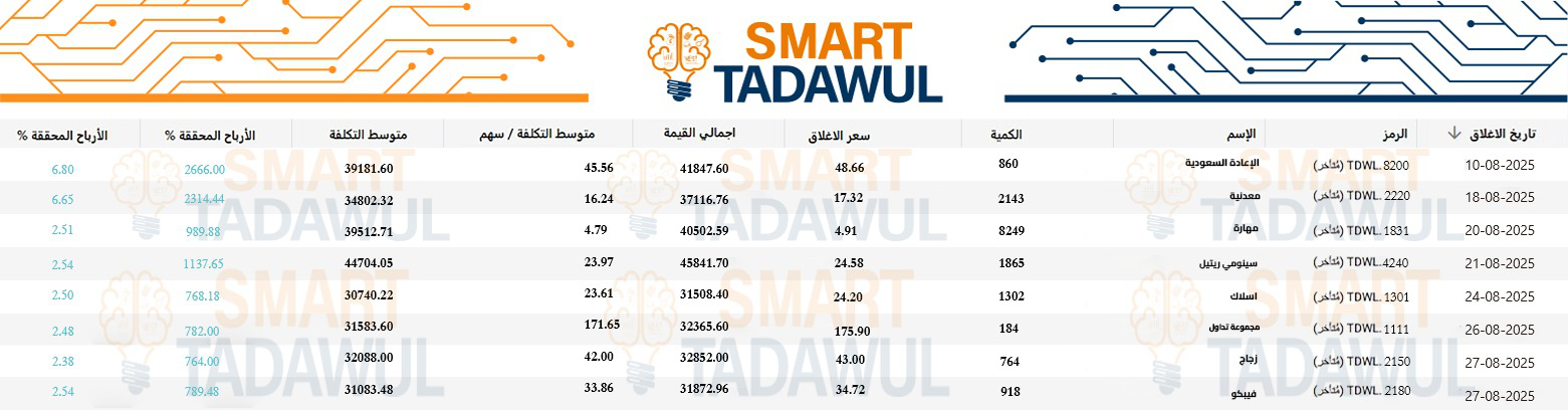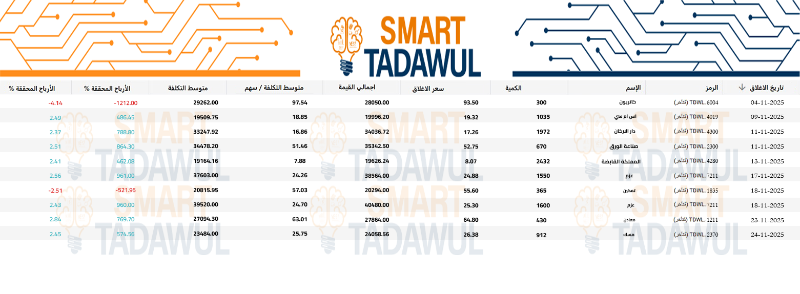 الصفقات الفعلية لتوصيات سمارت تداول – نتائج حقيقية لتحليلات ذكية